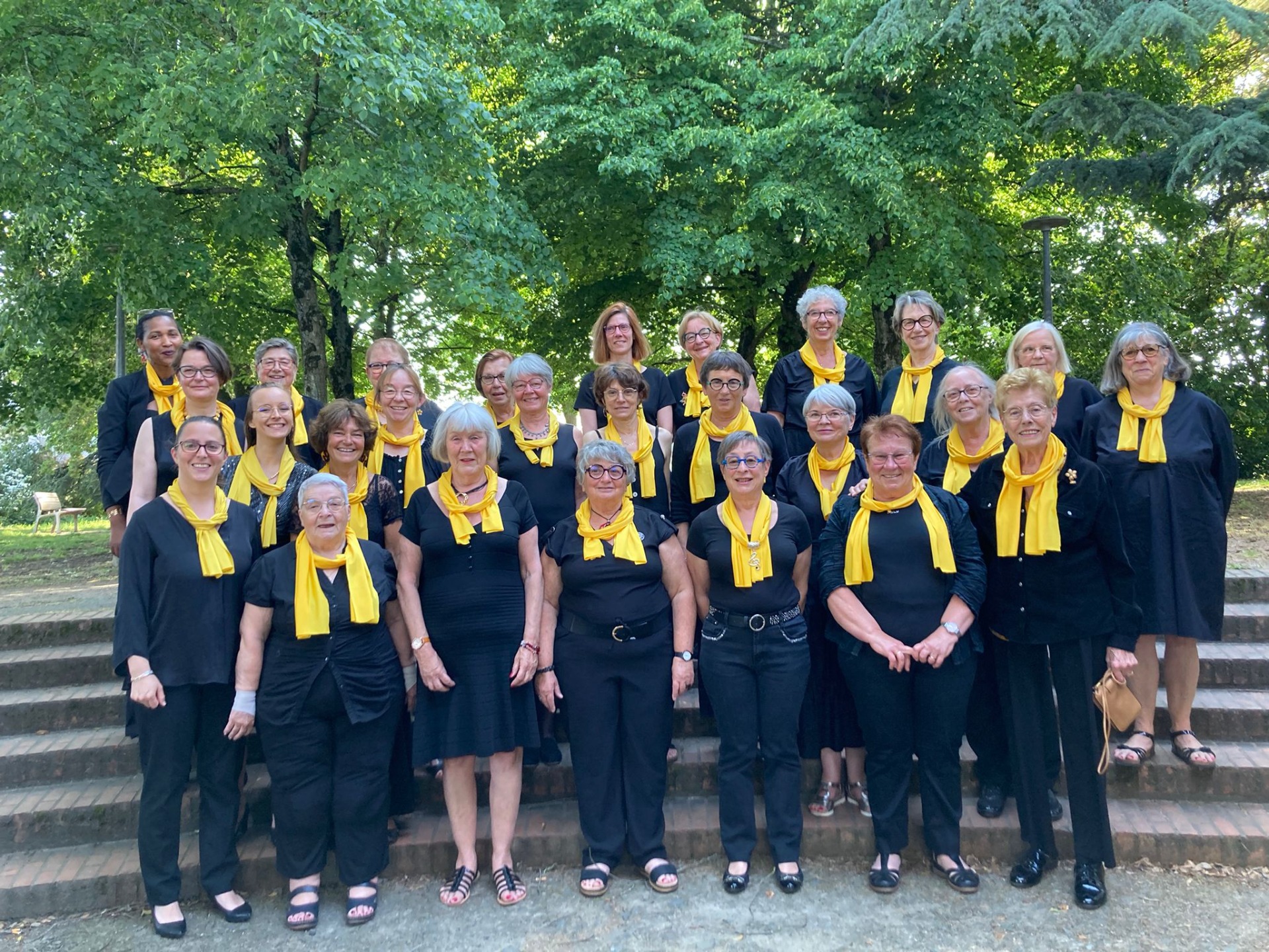 Pourquoi que des femmes ? La réponse est simple... parce que trop peu d'hommes se sont présentés lors des débuts de la chorale. Nous avons gardé cette tradition. Nous nous retrouvons les lundi soir pour répéter, et nous produisons plusieurs fois dans l'année.