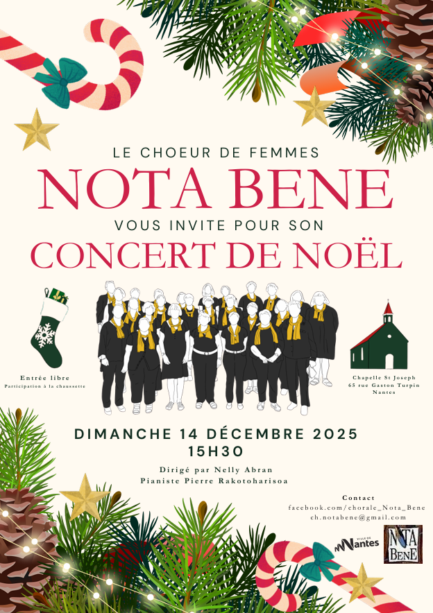 Le choeur de femmes Nota Bene vous invite pour son concert annuel le SAMEDI 8 JUIN à 20h30 à l'église Saint-Louis de Monfort, 30 avenue du grand bois à Saint-Herblain. Sera avec nous le chœur de femmes du Val de Chézine.